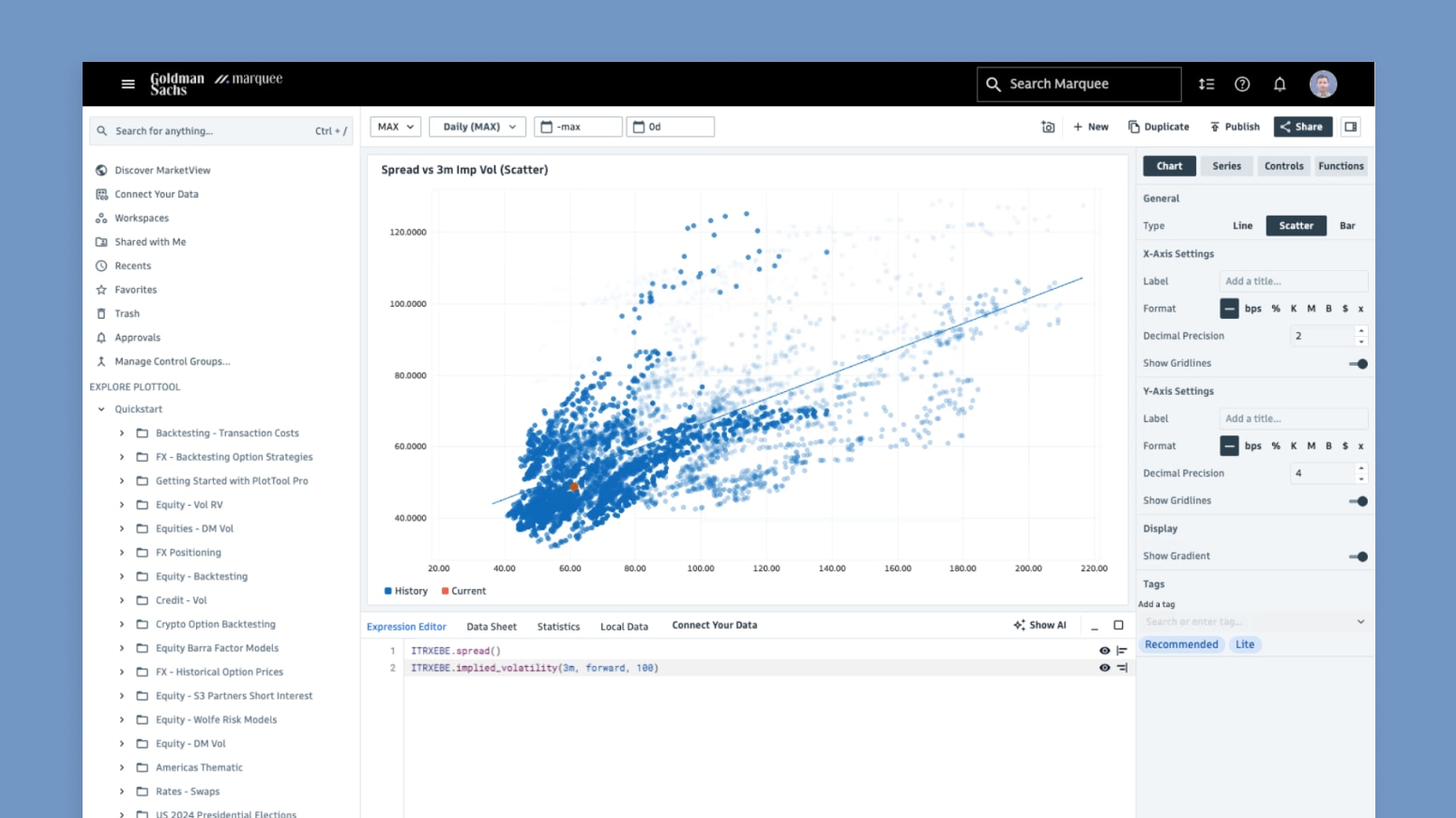 © 2025 Goldman Sachs & Co. LLC. All rights reserved. Descriptions of the products and services available through the Marquee platform provided herein are for educational purposes only and do not reflect all information that may be relevant in determining whether use of any such product or service is suitable for your circumstances. Goldman Sachs is not recommending that you take any action based on any information presented herein, which may be updated or modified form time-to-time by Goldman Sachs in its sole discretion without prior notice or subsequent notification. Prior to utilizing product or service available through the Marquee platform, you should read carefully any related disclosure provided by Goldman Sachs, including any information to which you may be required to agree and acknowledge or any user agreements that you may be required to execute, and make an independent determination regarding the suitability of your use of the relevant product or service.