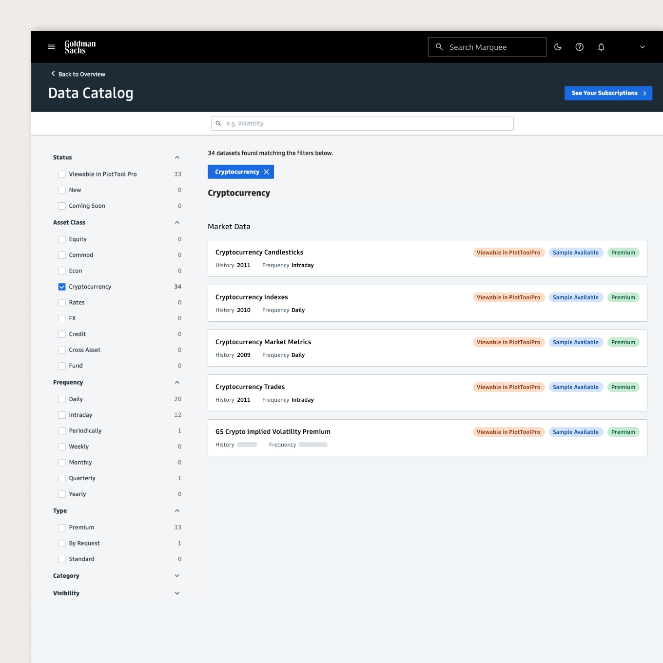 Access the same models and data used daily by Goldman Sachs sales and trading desks to navigate the markets and generate new insights.