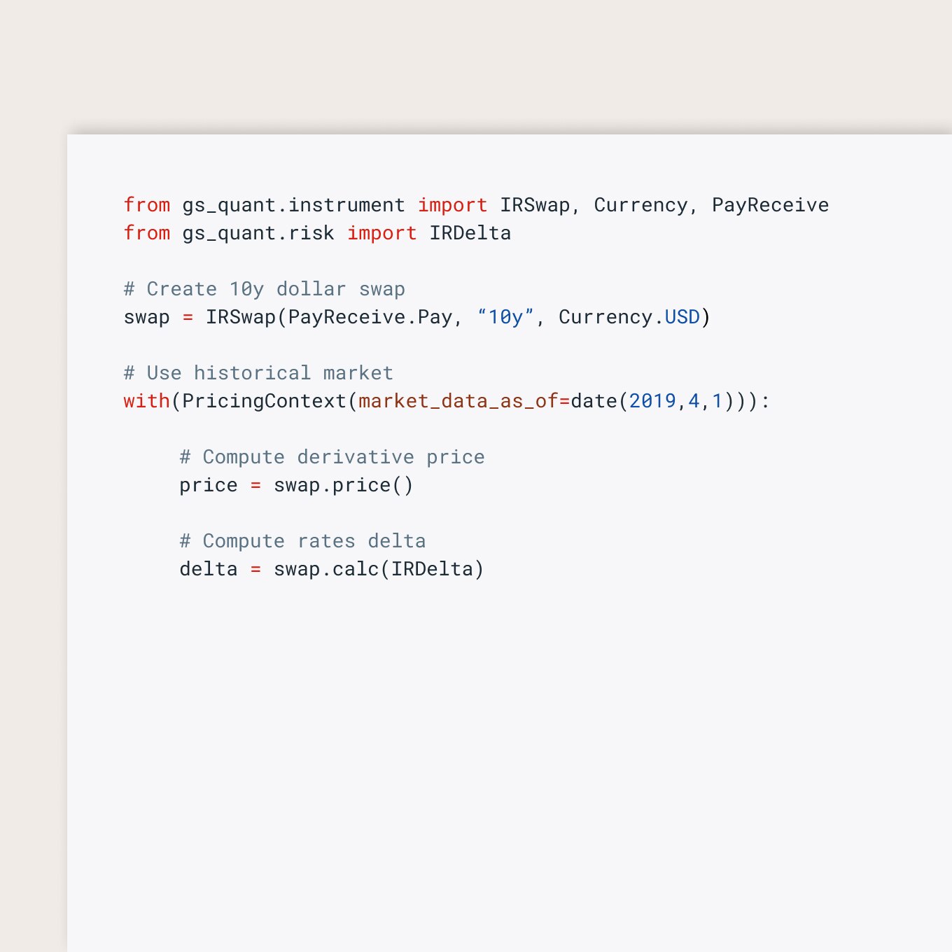 GS Quant is fully documented with extensive examples of use provided in the package, making this a friendly toolkit for structuring and portfolio analysis.